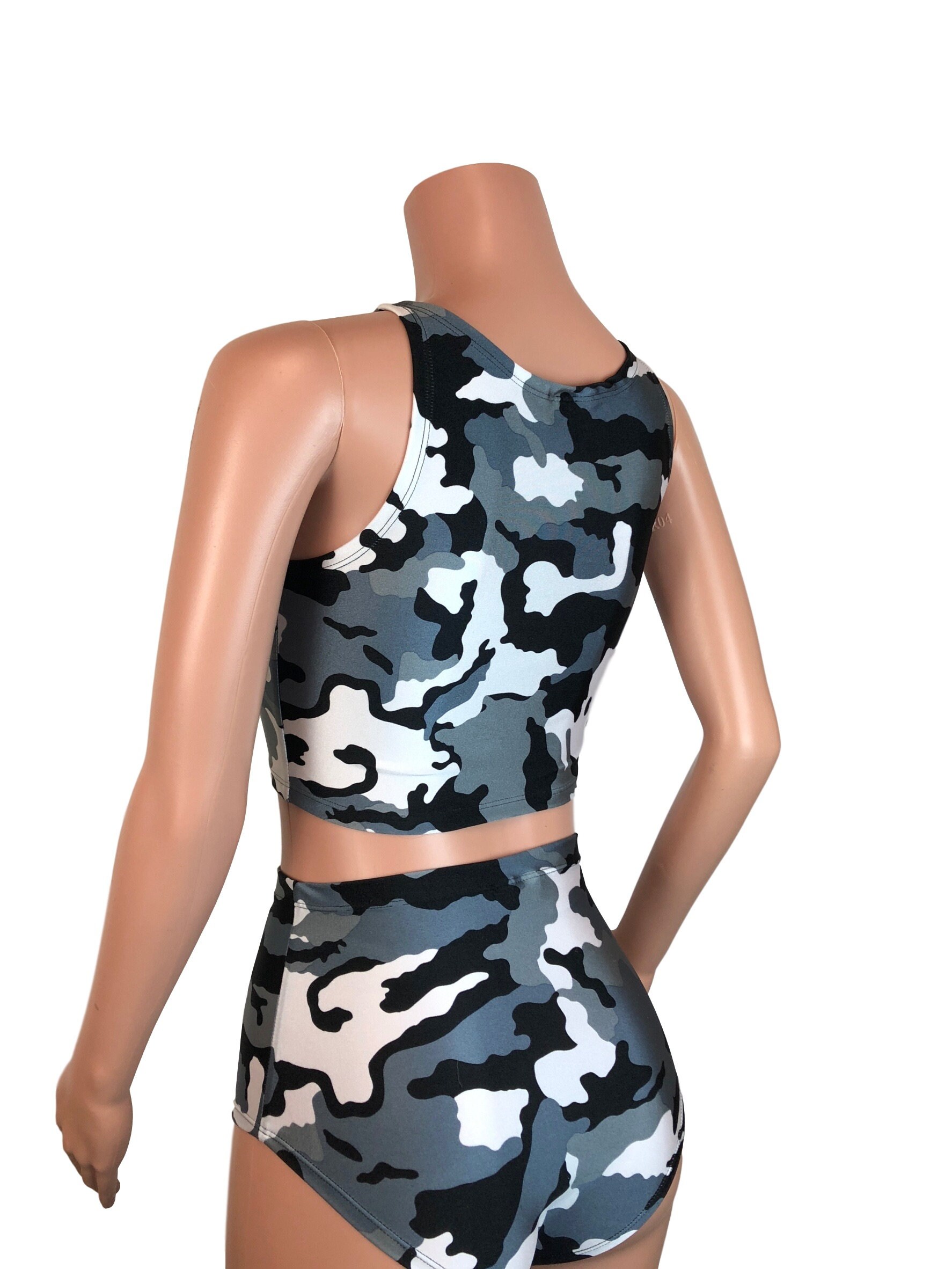 Schwarz Weiss Camo Camouflage Tank Crop Top Bodycon Clubwear Rave Wear Festival Kleidung Etsy De